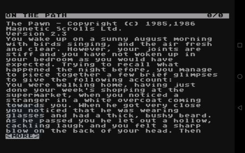 The Pawn was an adventure game originally released for the Sinclair QL in 1985 by a company called Magnetic Scrolls and then ported to a number of other systems. While the game had graphics on many of the platforms, this was really an interactive fiction or text adventure game. Interestingly, the game used a partial 68000 emulator on all versions of the game, even those that ran on less powerful computers.