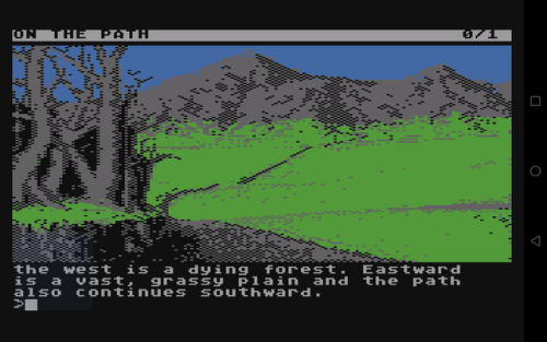 The images in this post are from the Atari 8-bit computer version of the game. This was one of the many versions that had graphics but they were basically just static images that depicted your location. The graphics are essentially optional and don’t really help to solve the puzzles in the game.