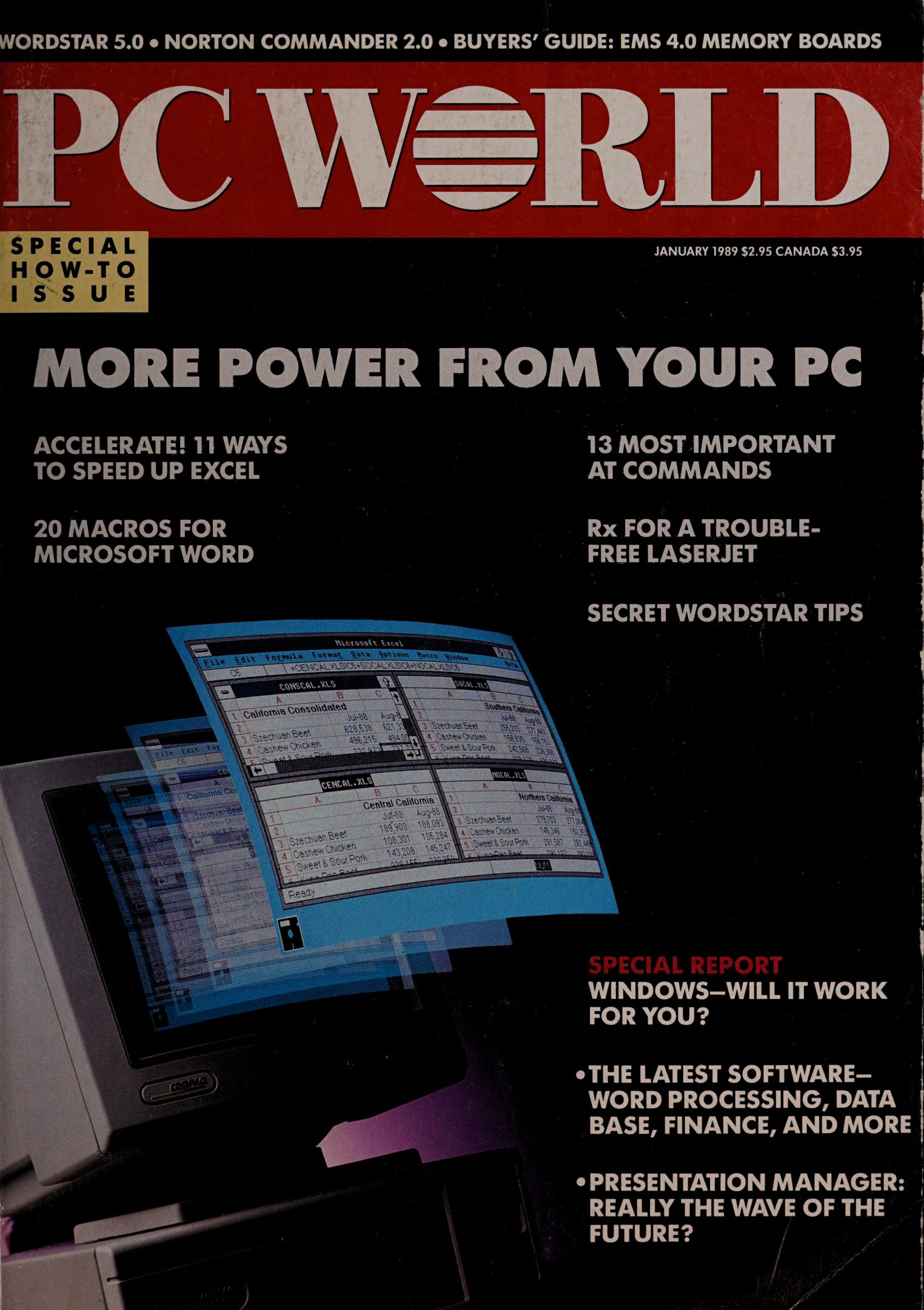 Source: PC World (January 1989) PC World was one of the most well known and widely distributed PC related magazines for many years. There was a LOT of content in 1989. This issue has over 300 pages. T...