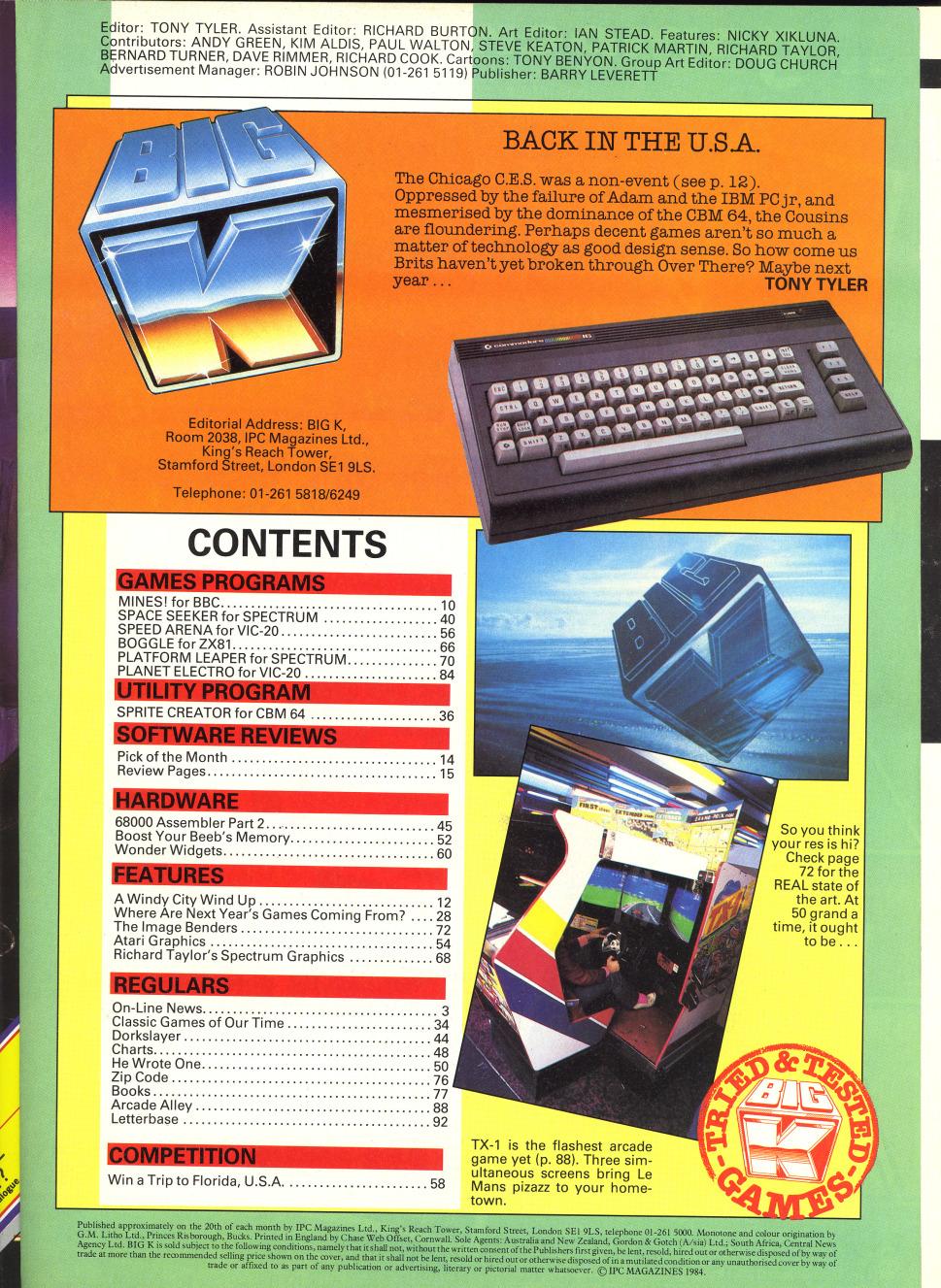 Source: Big K - Issue Number 5 - August 1984 Big K is a gaming magazine that was published in the U.K. in the 1980s. It mostly covered the popular home computers of the time and included type-in games...