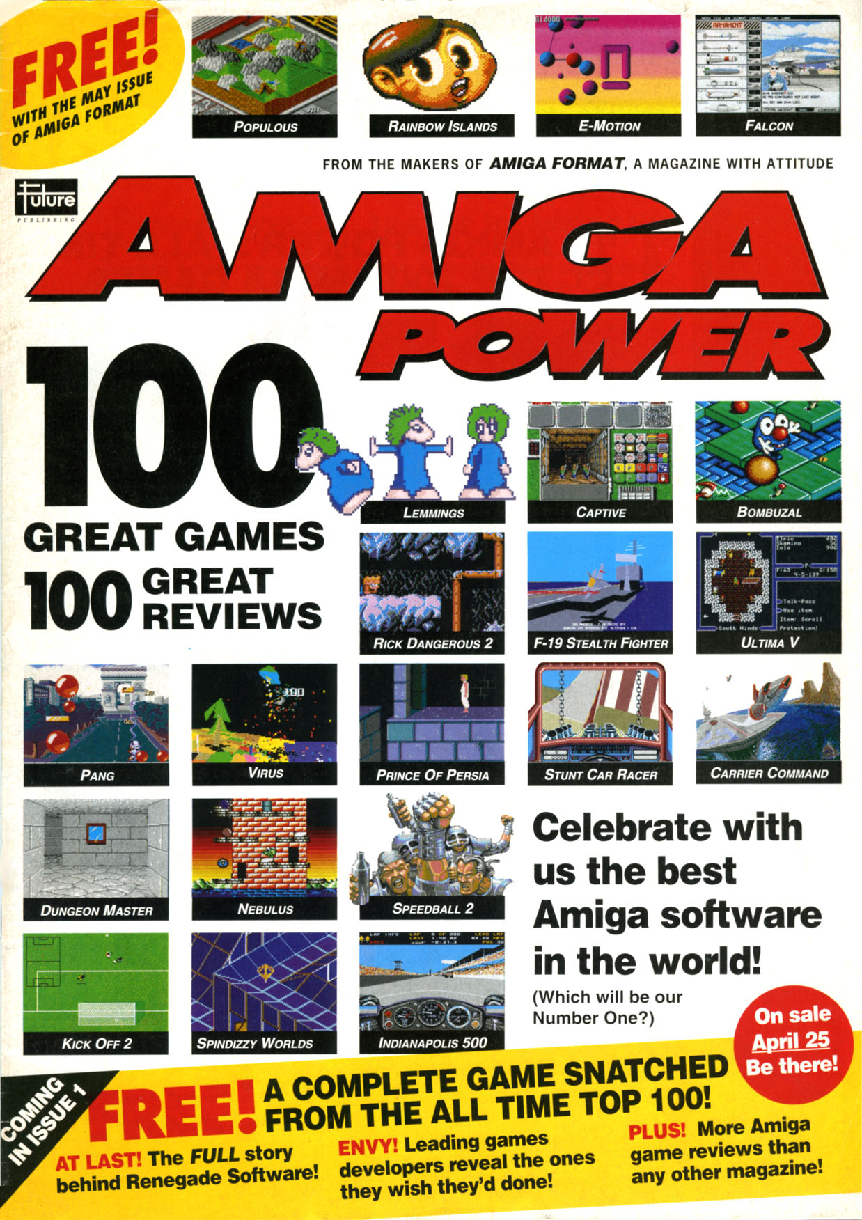 Amiga Power is an Amiga gaming magazine that was published in the U.K. by the publishers of Amiga Format. It had a pretty good run lasting from 1991 to 1996. This is Issue 0 which has a May 1991 cover...