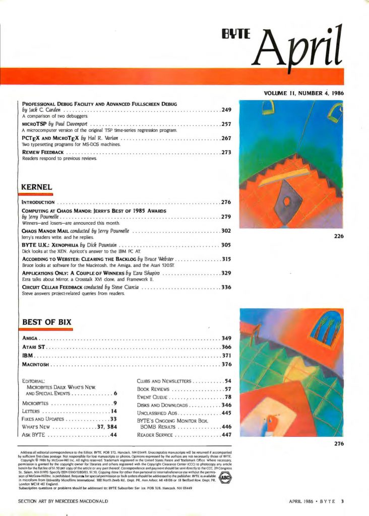 Byte (April 1986) Posted on November 19, 2025 1:40 pm by Azrael Comment Computer Arcana 📎and tagged 1980s 1986 Byte computers magazine retrocomputing