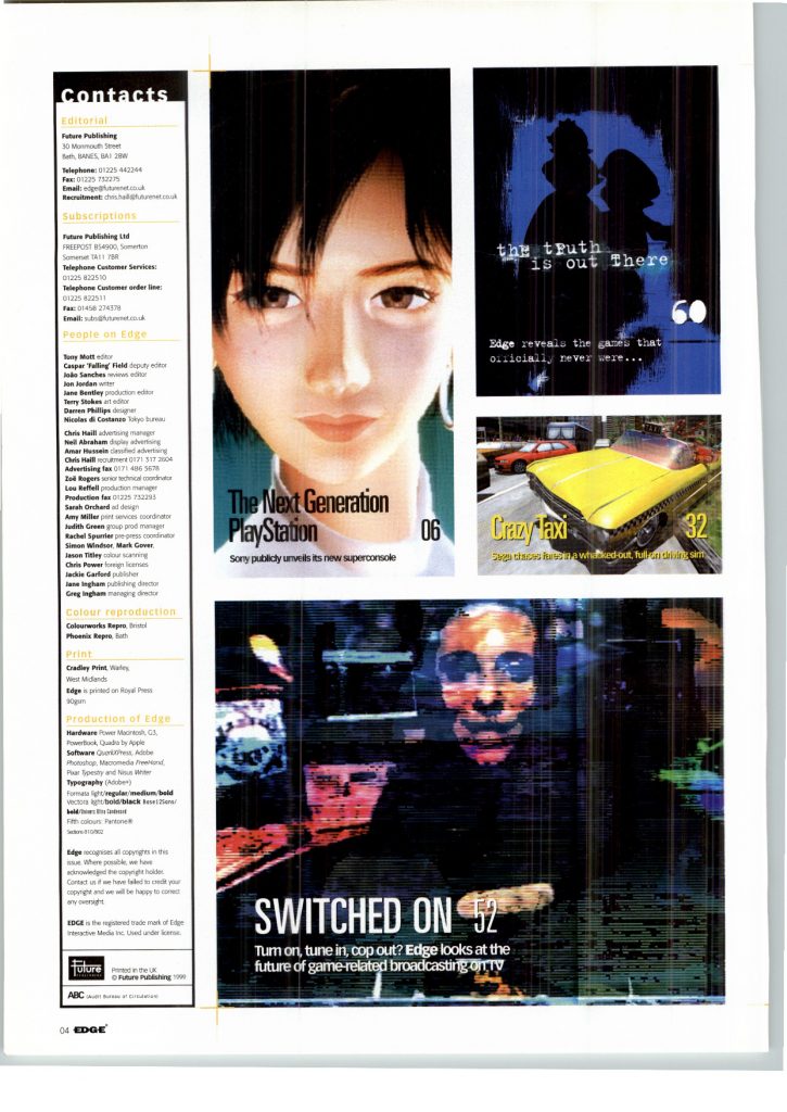- Sneak Previews – Previews of upcoming games including Spider (PlayStation), City of Lost Children (PlayStation), WCW vs. The World (PlayStation), League of Pain (PlayStation), Carmageddon (PlayStation, DOS), Rush Hour (PlayStation), Peak Performance (PlayStation), and Test Drive: Off-Road (PlayStation DOS, Windows 95).