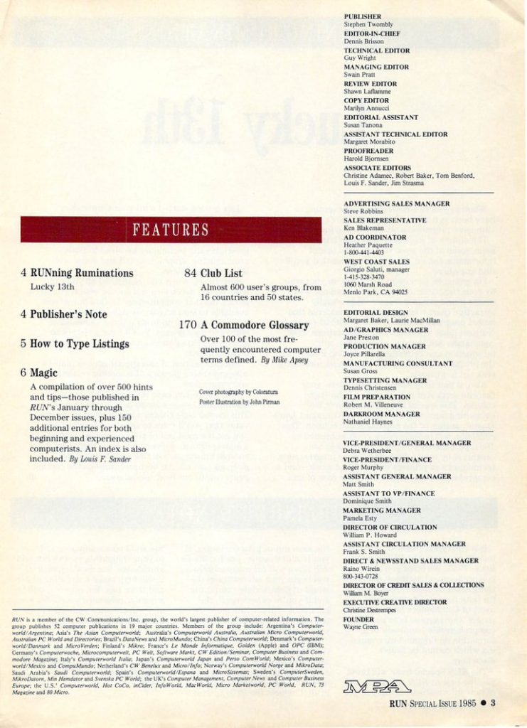 - Magic – RUN’s monthly hardware and software tips and trick section, offering including small pieces of code. This special issue includes a compilation of tips from the previous year as well as new tips and tricks for this issue.