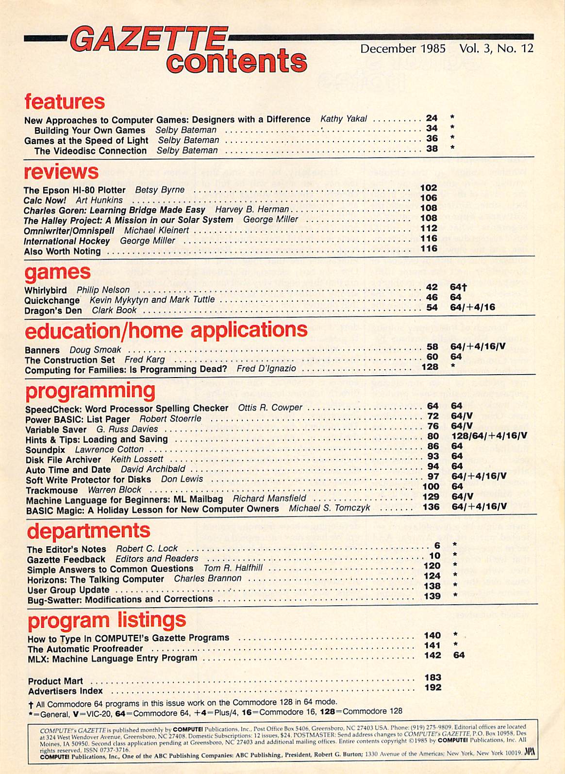 Compute!’s Gazette (December 1985)