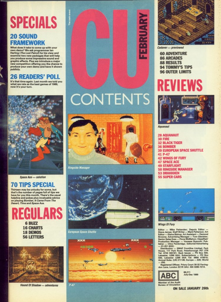 - Cheapos – Reviews of some of the latest bargain releases including Bully’s Sporting Darts, Starblade, Maniac Mansion, Midwinter, Superski 2, Lost Dutchman Mines, Brides of Dracula, 4th & Inches, The Boston Bomb Club, Strikefleet, and The Greatest.